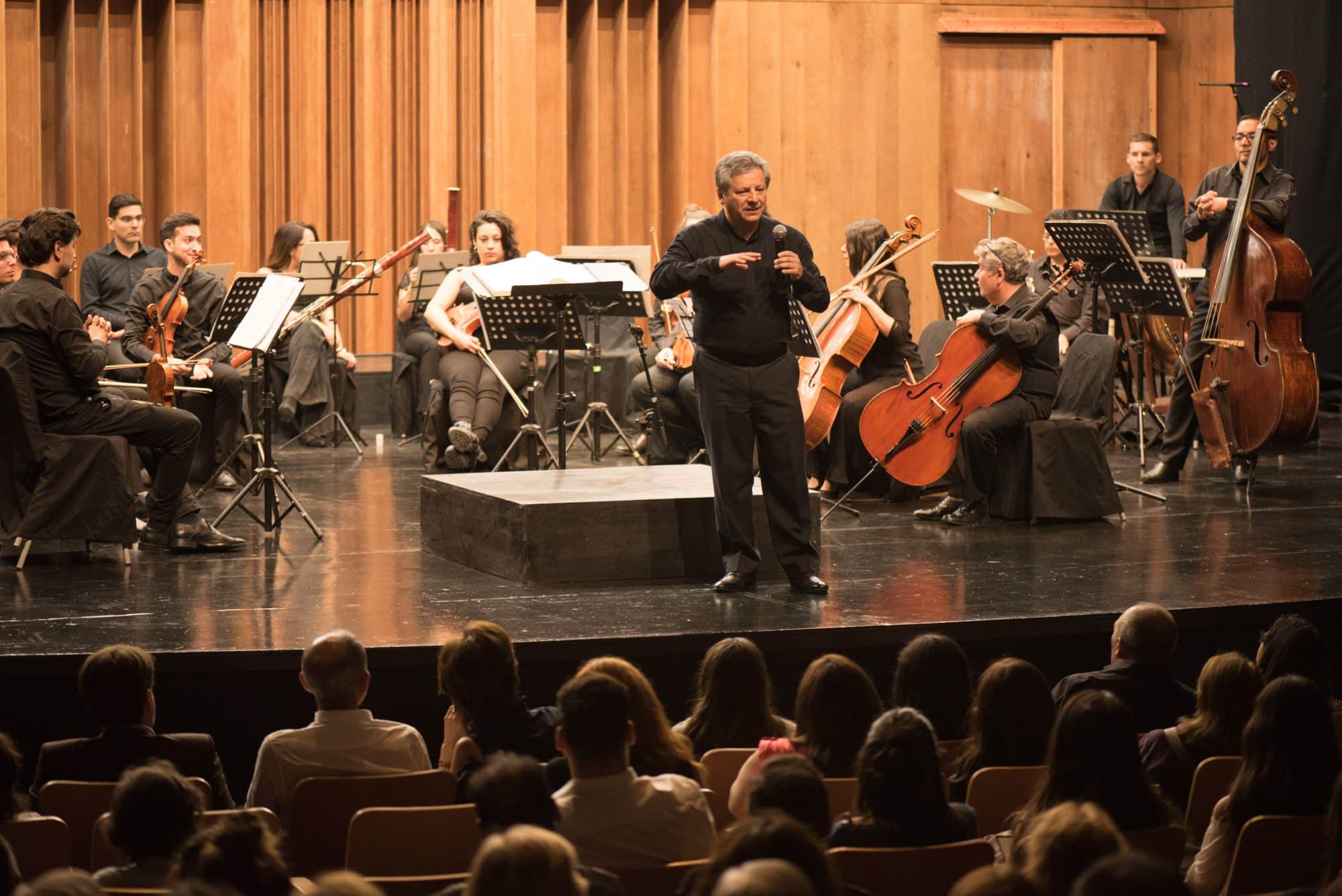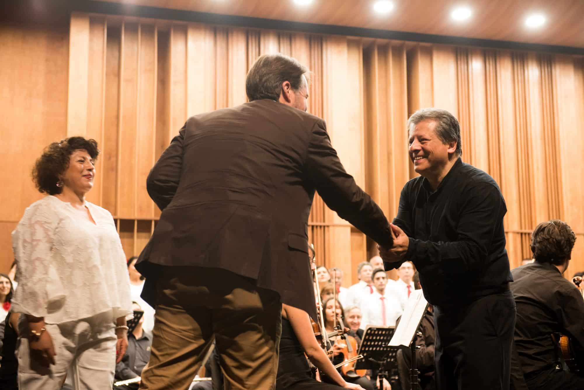 Los artistas en escenario fueron la Camerata Universidad Andrés Bello, con la dirección de Santiago Meza y el Coro Polifónico Vita Et Música, con la dirección de Nolfa Barría. El concierto contó con la participación de más 800 personas.
